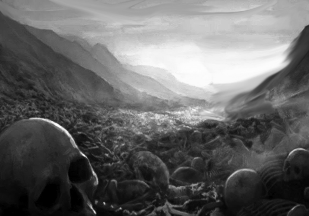 The hand of the Lord was on me, and he brought me out by the Spirit of the Lord and set me in the middle of a valley; it was full of bones. He led me back and forth among them, and I saw a great many bones on the floor of the valley, bones that were very dry. He asked me, “Son of man, can these bones live?”